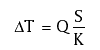 The factors that effect the magnitude DT are the heat transfer rate (Q), thickness of the barrier (S), and the thermal conductivity (K) of the barrier material. The following simplified expression is given showing the relationship between these factors: